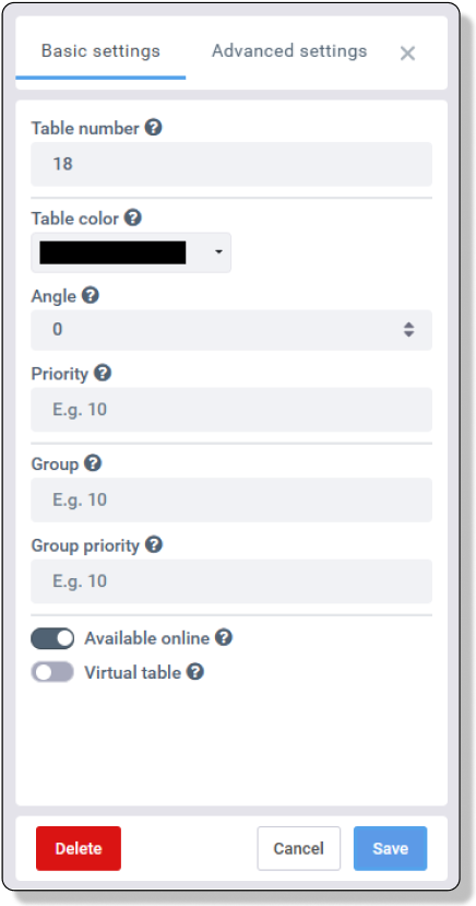 Set if the table should be avaible for online bookings or no. Unchecked tables will only be availble for internal bookings. - Virtual Table