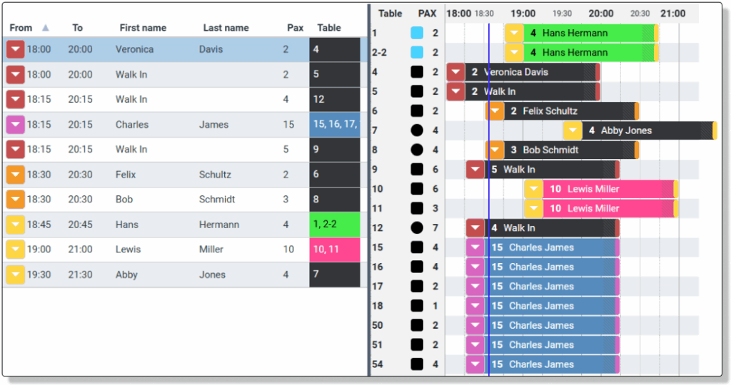 Left Table: The guests have left the table, and the table is now available for new bookings